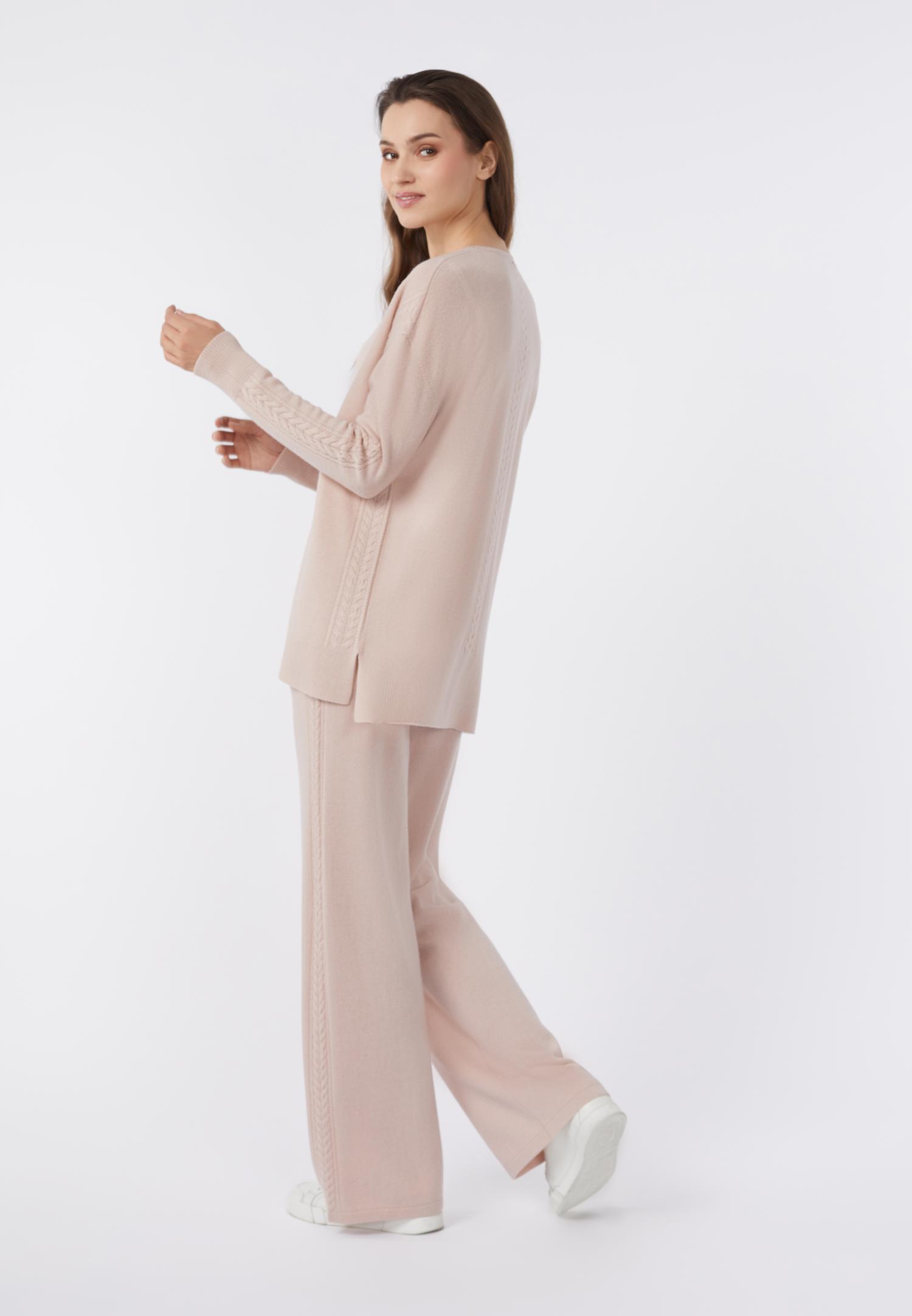 Свободные прямые брюки на резинке со средней посадкой из мягкого вязаного трикотажа. Стрелки на передних деталях отстрочены - это удлиняет силуэт и делает его стройнее. Мягкая пряжа из тонкого шелка, лиоцелла и хлопка прекрасно подходит для повседневной носки, обеспечивая непровзойденный комфорт и легкость на протяжении всего дня.