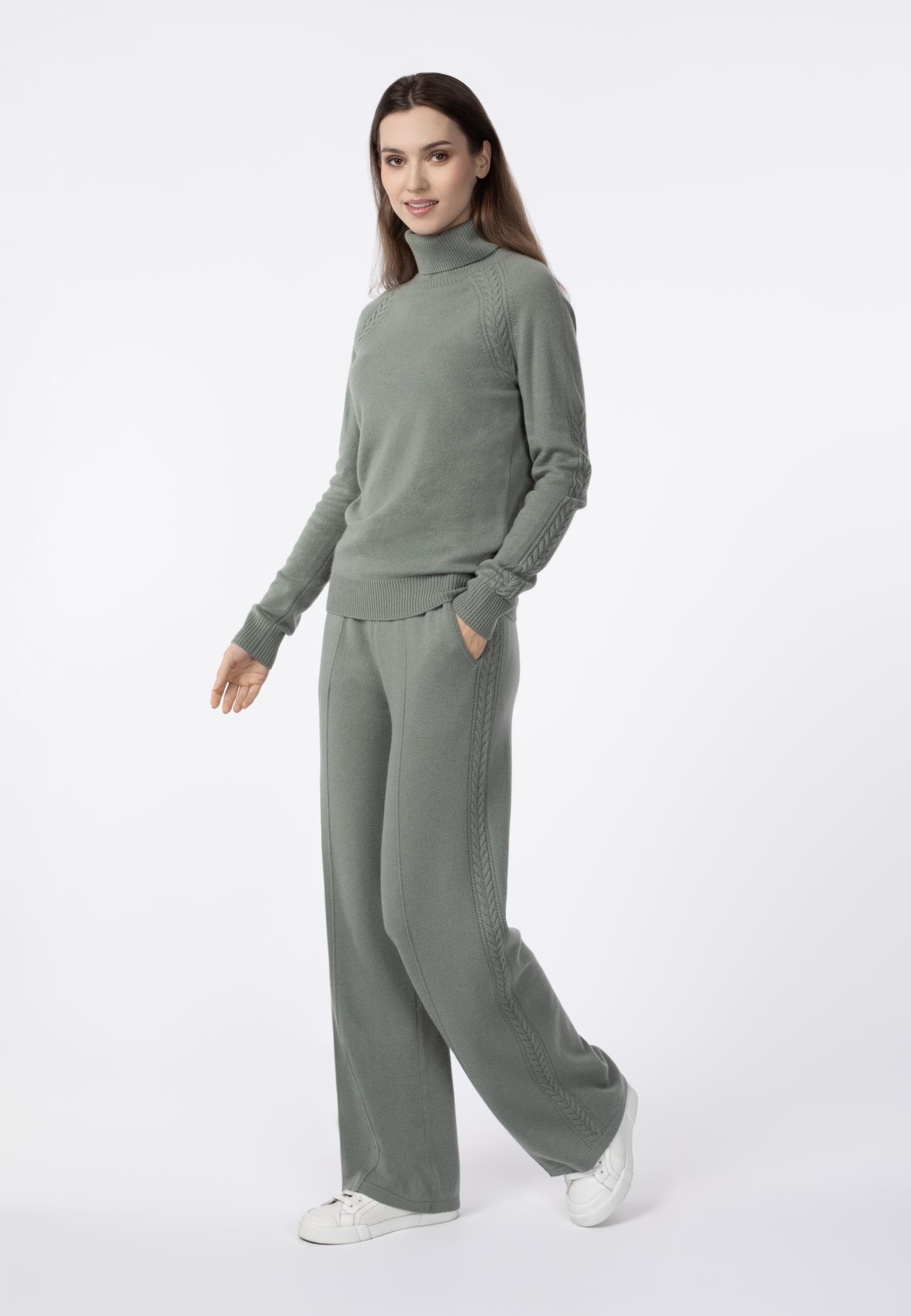 Классические брюки из кашемира полуприлегающего силуэта. Фактурные косы вдоль брюк – фирменная деталь коллекции BRAIDED ELEGANCE.