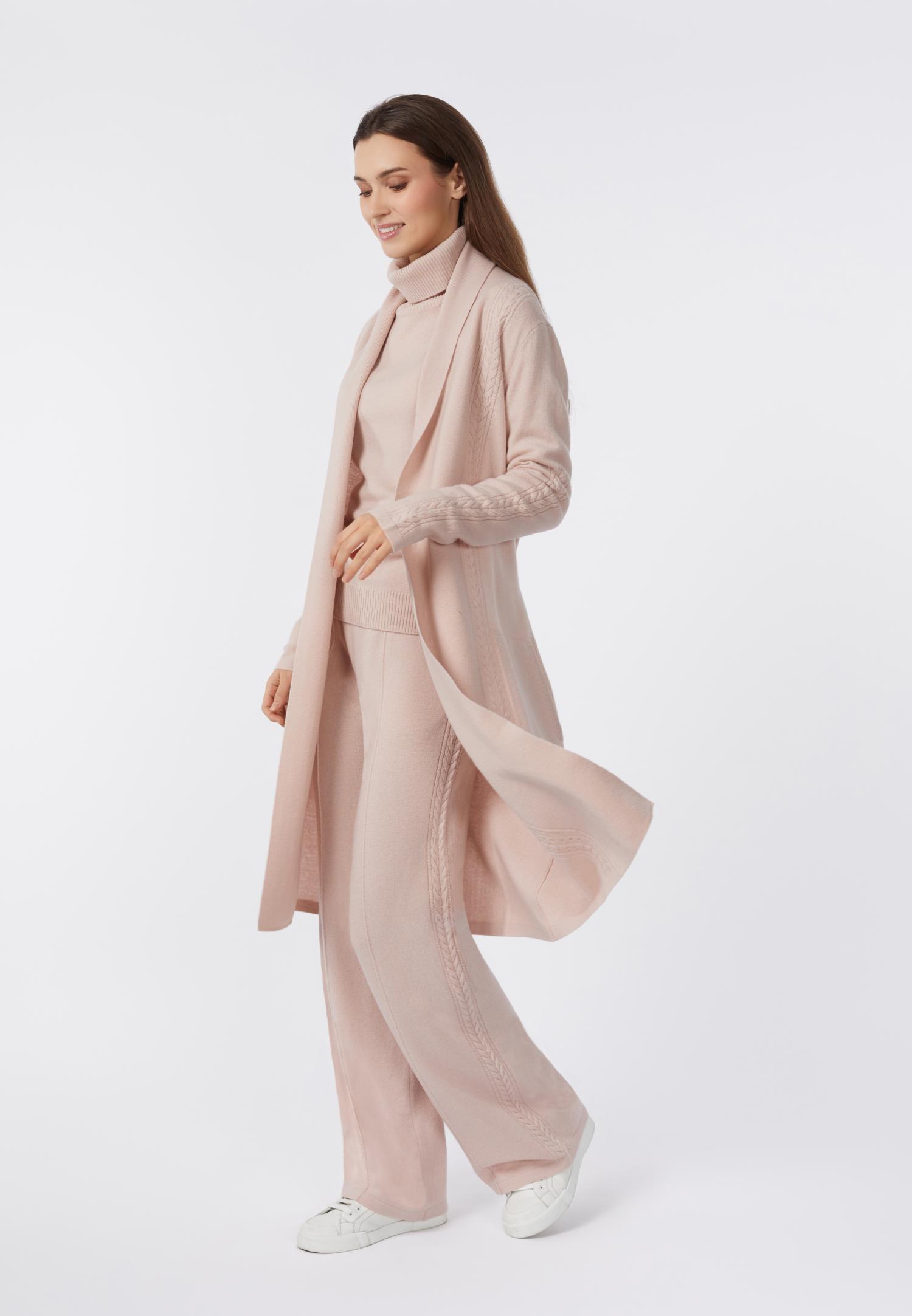 Мягкий вязанный пояс, без эластичной тесьмы, на тонких завязках обеспечивает ощущения комфорта и уверенности в каждом движении.