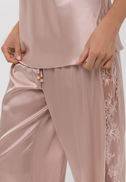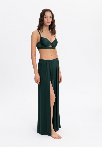 Новинкой 2022 года являются брюки с разрезом. Их шьют из легкого материала. Разрез может быть как спереди так и сбоку. С брюками создаются летние, утонченные образы.