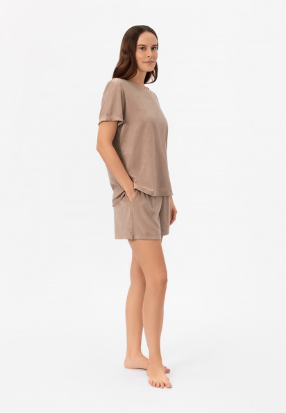 Укороченные, широкие брюки стали популярной моделью довольно быстро. Чтобы сделать образ стильным, рекомендуется заправлять футболку или блузку внутрь.
