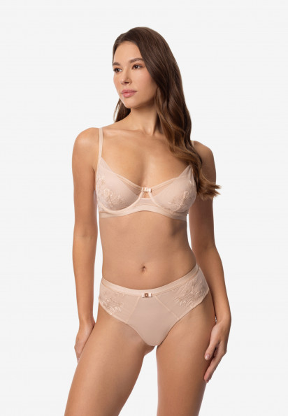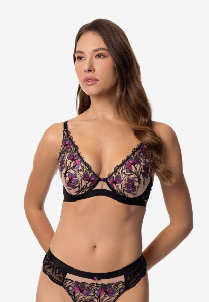 Underwired moulded balconette bra with push-up